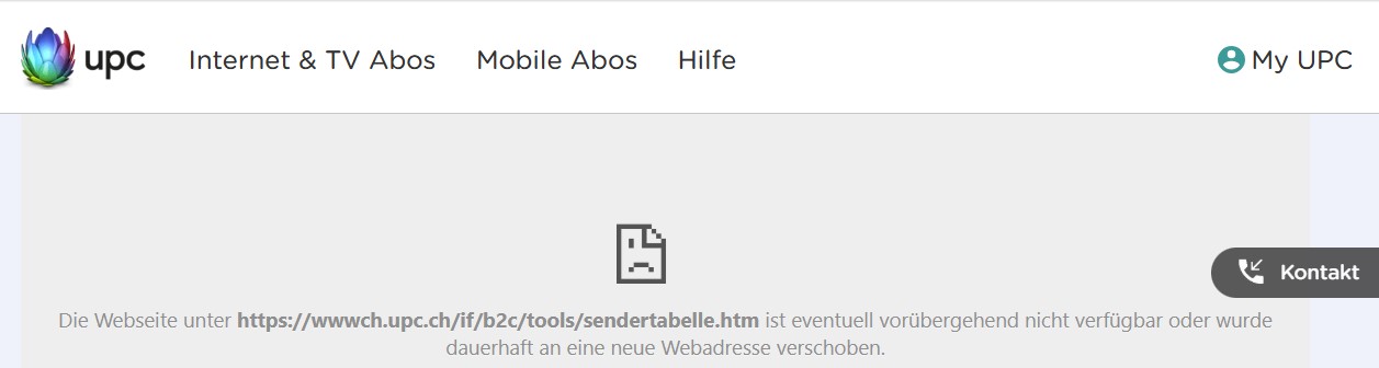 Auf der Suche begegnen einem auch offensichtlich falsch konfigurierte Webseiten von UPC: